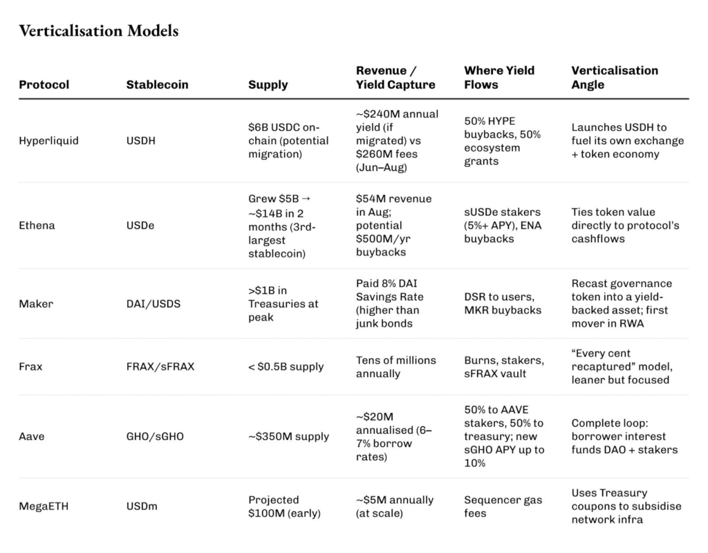 Pero en 2025 algo cambió. Los protocolos se cansaron de regalar ese flujo y decidieron verticalizar: acuñar sus propias stablecoins y capturar directamente ese rendimiento.